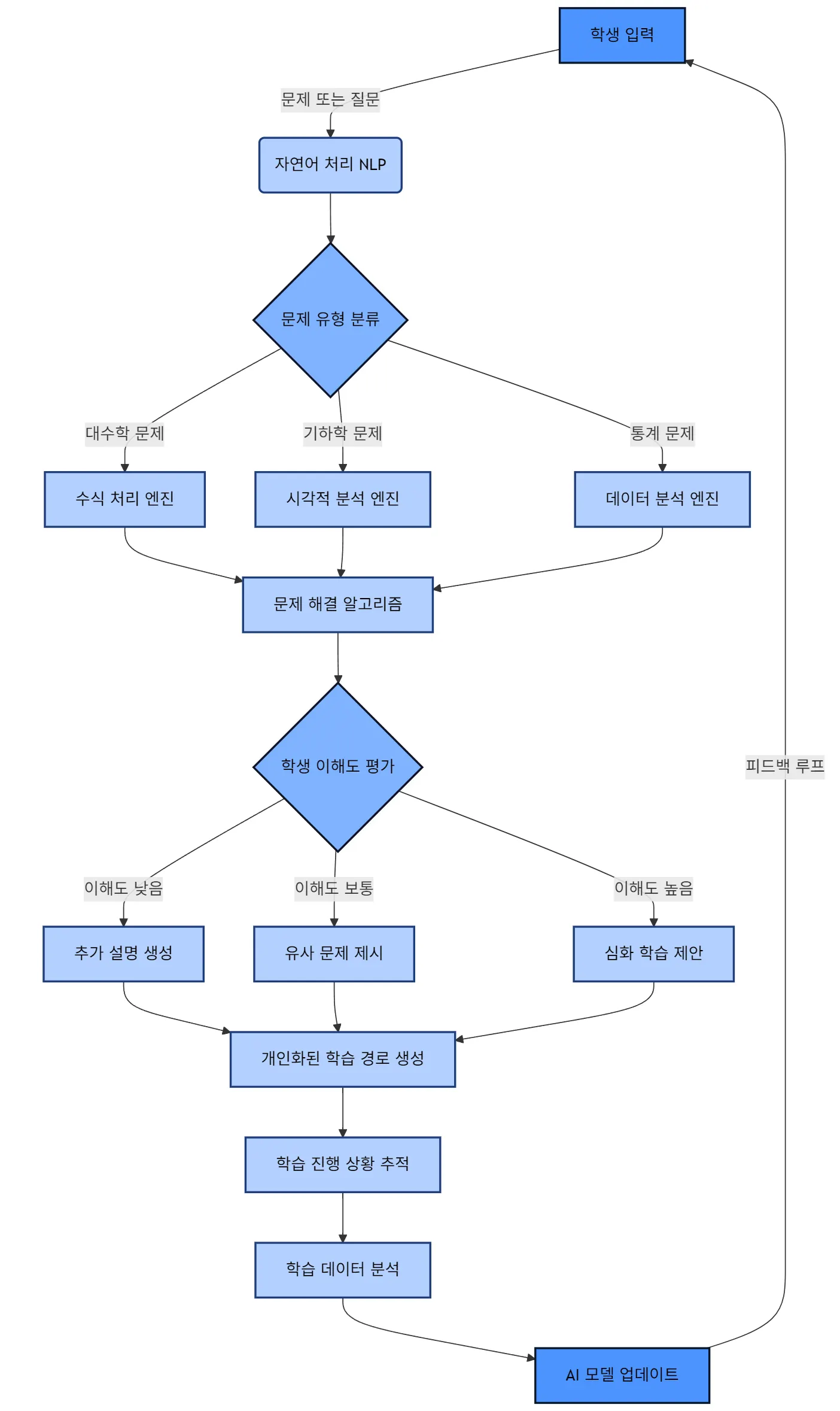 수학은 구조적이며, 명확한 규칙과 논리적 진행을 가지고 있는 학문입니다. 이러한 특성은 AI가 점점 더 복잡해지는 문제를 통해 학생의 수준에 맞는 문제를 풀 수 있도록, 상세한 학습 경로를 만드는 데 용이합니다. AI는 이러한 특성을 바탕으로, 학생들의 개별적인 학습 속도와 이해도에 맞춘 맞춤형 커리큘럼을 제공할 수 있게 됩니다.