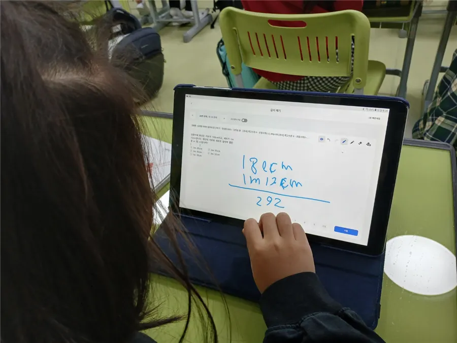 학생들 역시 “태블릿으로 하니까 바로 알 수 있어서 좋아요.”, “틀린 걸 바로 고칠 수 있어서 답답하지 않아요.” 와 같은 반응을 보였어요.