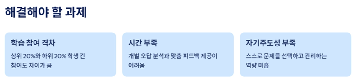 단순히 문제를 많이 푸는 게 아니라, 스스로 문제를 알고 틀린 이유를 알고 다시 도전하는 경험을 만드는 것이었어요. 그래서 저학년도 무리 없이 따라올 수 있는 자기주도학습 구조가 필요했어요.
