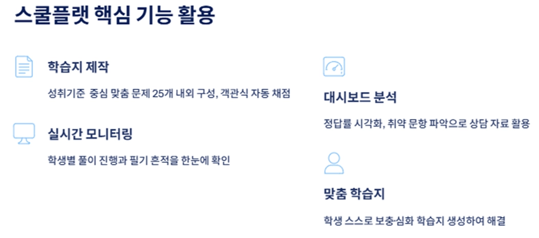 초기 1~2주는 스쿨플랫에서 만든 학습지를 출력해 종이로 먼저 풀이했어요. 이때는 기기 조작보다 문제 이해와 풀이 방식에 집중했어요.