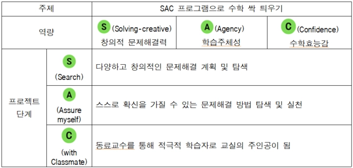 그래서 학생이 스스로 문제를 선택하고 해결 과정을 친구에게 설명하며 확신을 쌓아가는 SAC 프로그램을 수업의 큰 틀로 설계했어요.