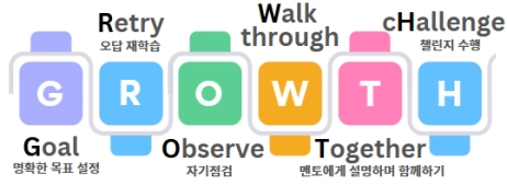 GROWTH 모델을 기반으로 설계해 학생들의 목표 설정부터 재도전까지 자연스럽게 이어지도록 했어요. 또한, 80분 블록 수업 안에서 한 차시가 하나의 완결된 학습 경험이 되도록 구성했어요.