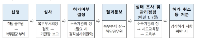 허가여부 결정 : 소속기관의 장(필요 시 겸직심사위원회)이 허가 여부를 결정합니다.
